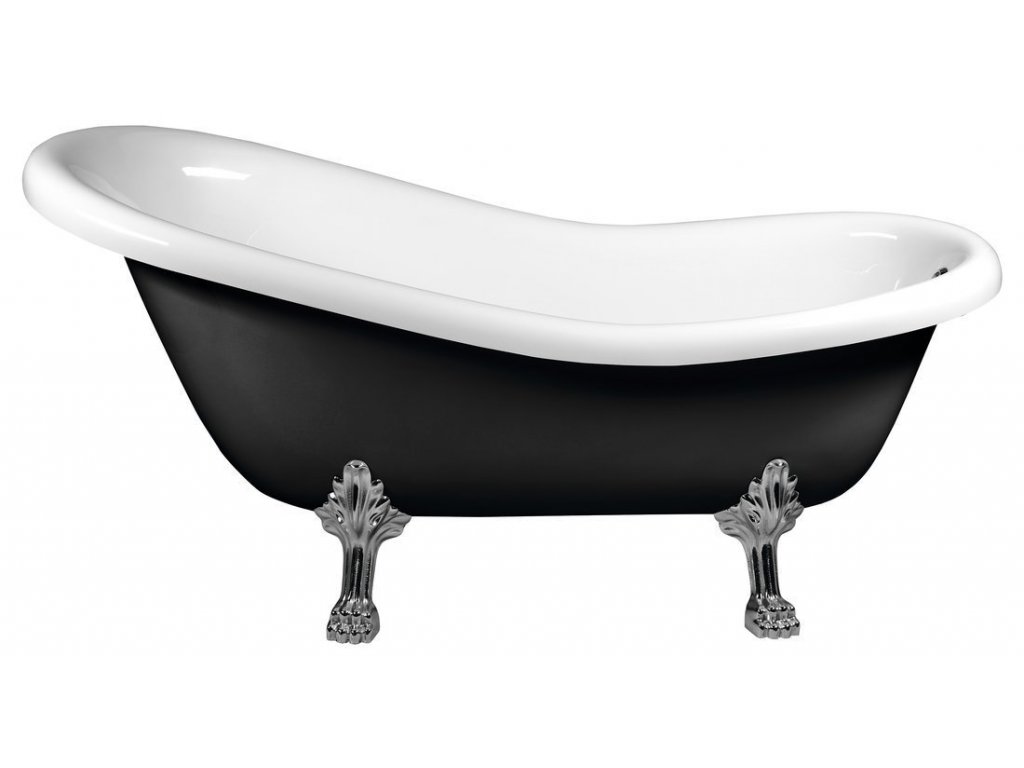 RETRO voľne stojaca vaňa 158x76x71cm, nohy chróm, čierna/biela