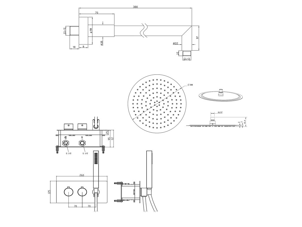 RHAPSODY podomietkový sprchový set s termostatickou batériou, 2/3 výstupy, chróm