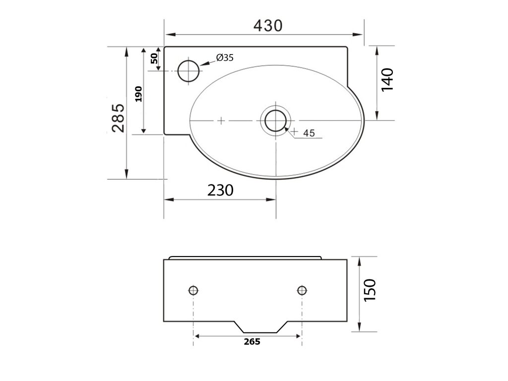 RIBERA keramické rohové umývadlo 43x28,5cm, ľavý otvor na batériu, biela