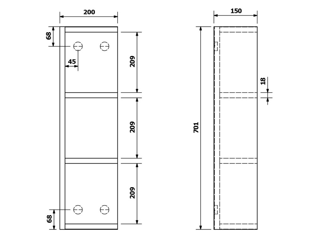 RIWA otvorená polica 20x70x15cm, ľavá/pravá, brest Bardini
