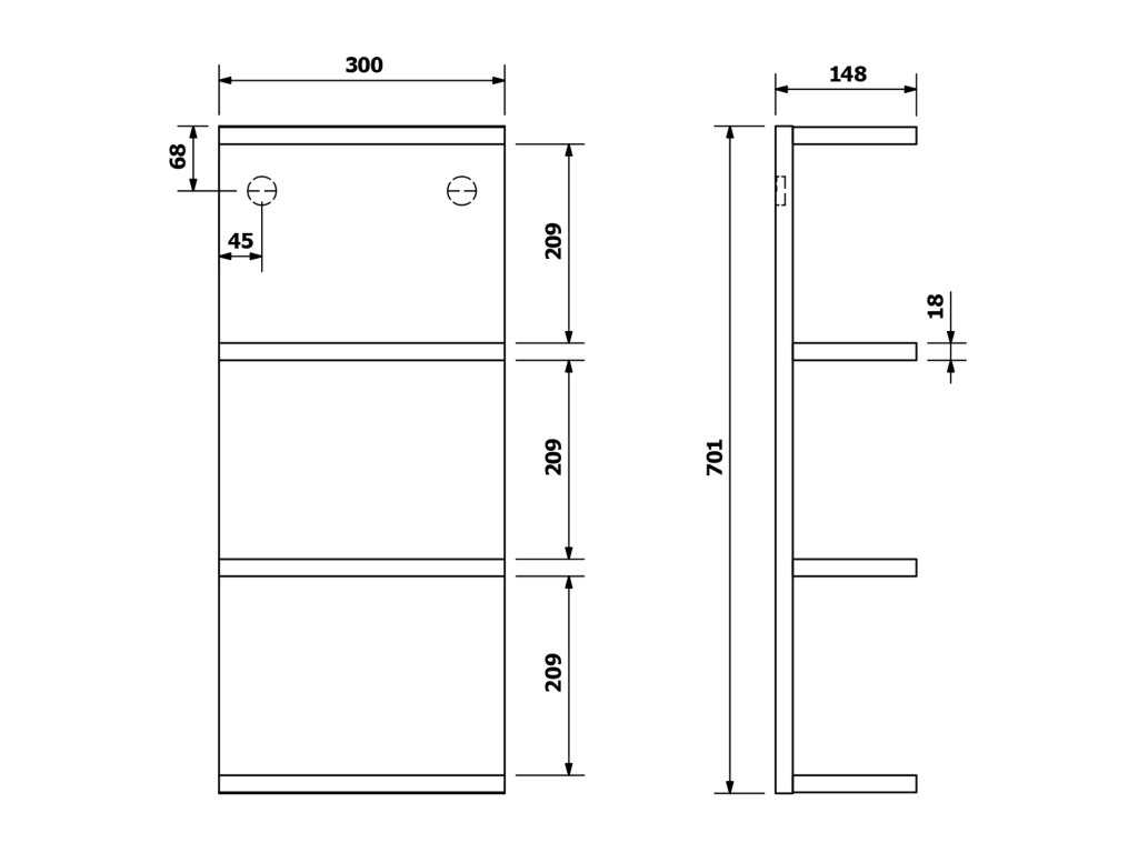 RIWA otvorená polica 30x70x15cm, brest Bardini