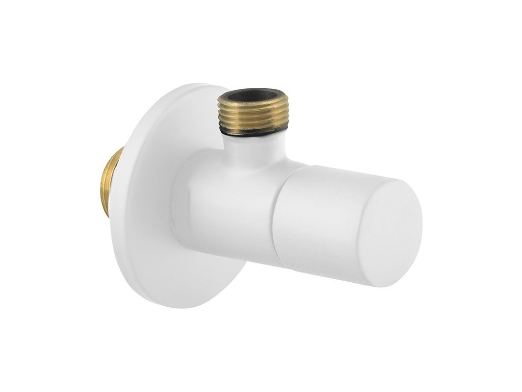 Rohový ventil s rozetou, guľatý, 1/2"x 3/8", biela matná
