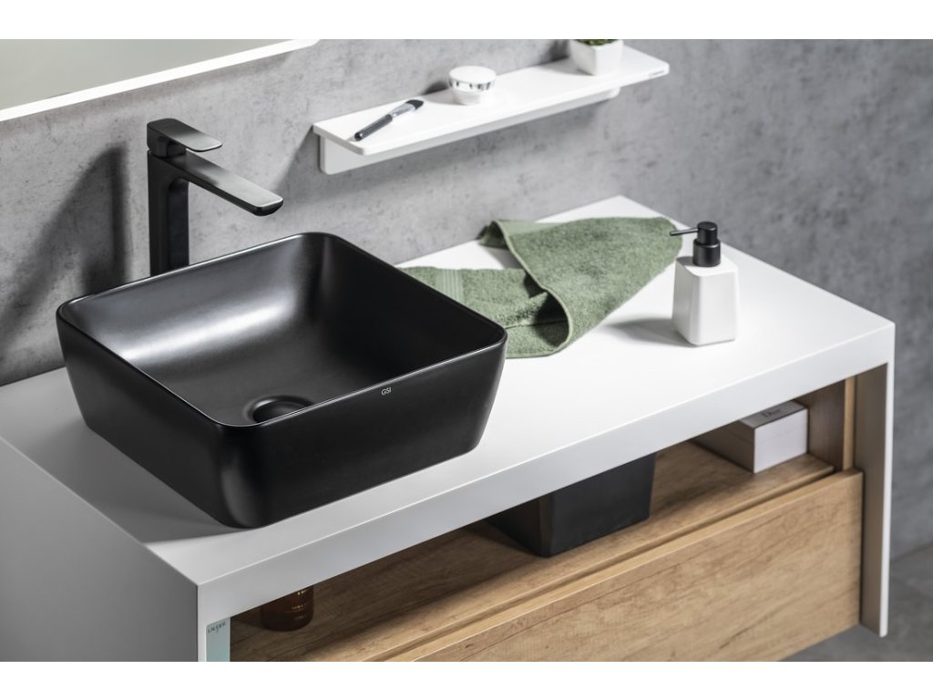 SAND/NUBES keramické umývadlo na dosku 38x38cm, čierna matná