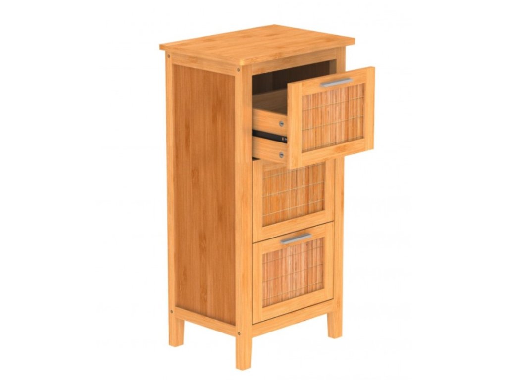 Bambusový nábytok od firmy Schütte sa vyznačuje vysokou kvalitou a nadčasovým designom. Bambusová skrinka disponuje tromi šuplíkmi. Ponúka teda dostatok úložného priestoru napr. pre uteráky, osušky alebo pre kozmetiku.