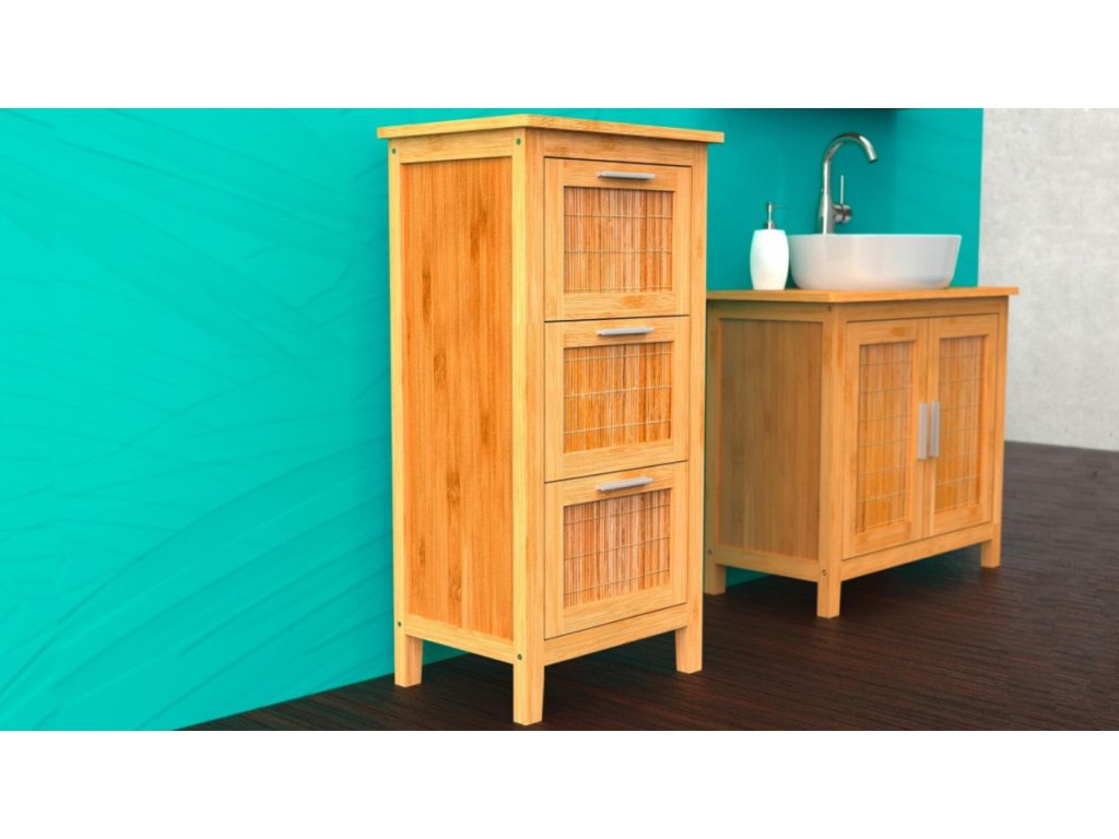 Bambusový nábytok robí teplý a hrejivý dojem, kúpeľňa bude pôsobiť útulnejšie . Skrinka bude skvele vyzerať aj v iných miestnostiach napr. v predsieni alebo v obývacej izbe.
