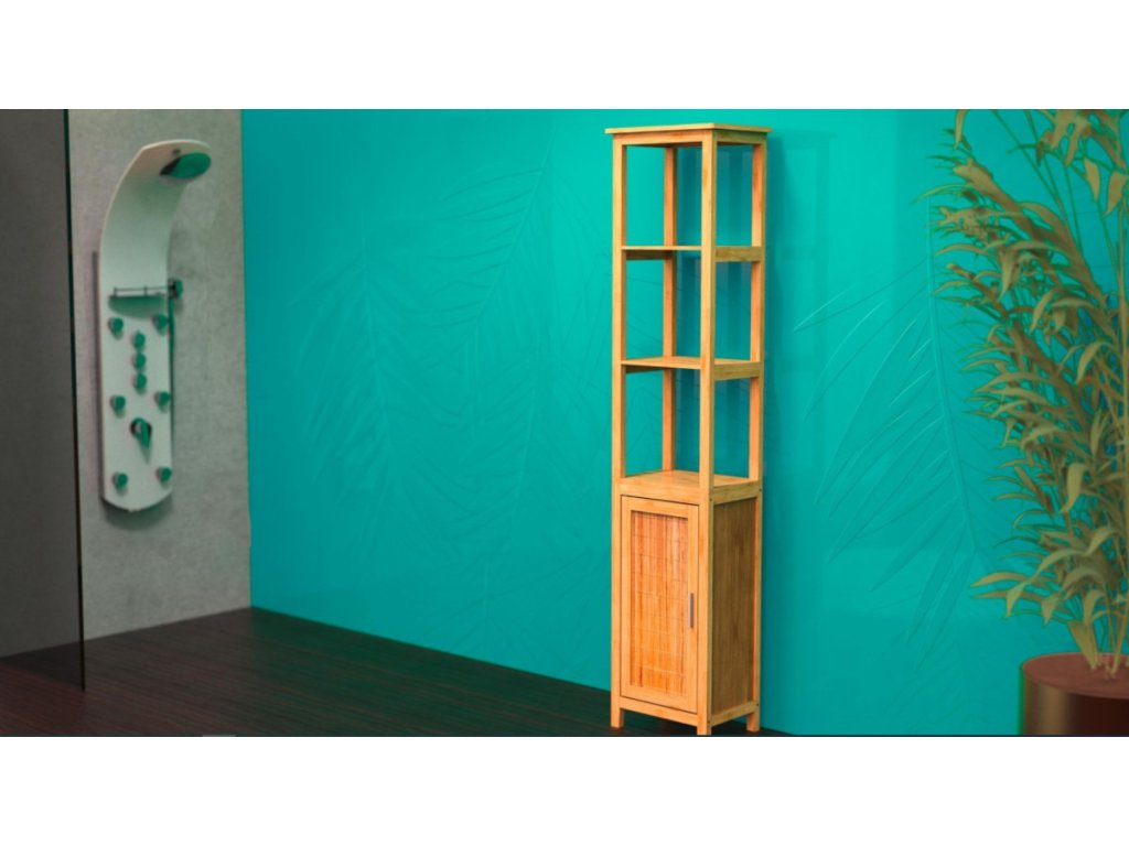 Vysoká skrinka je vyrobená z vysoko kvalitného bambusového dreva. Vyznačuje sa dlhou životnosťou a odolnosťou proti vlhkosti. Bambusový materiál je vysoko odolný, obzvlášť v náročnom prostredí kúpeľní.