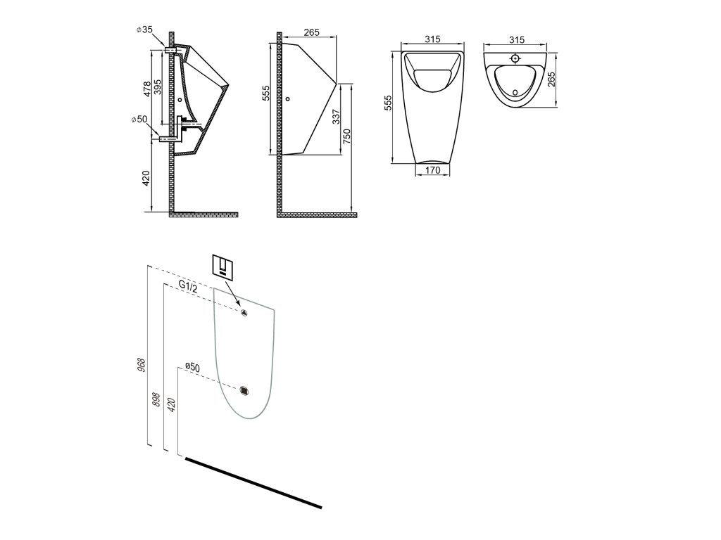 SCHWARN BLACK keramický urinál, zadný prívod, zadný odpad, čierna mat