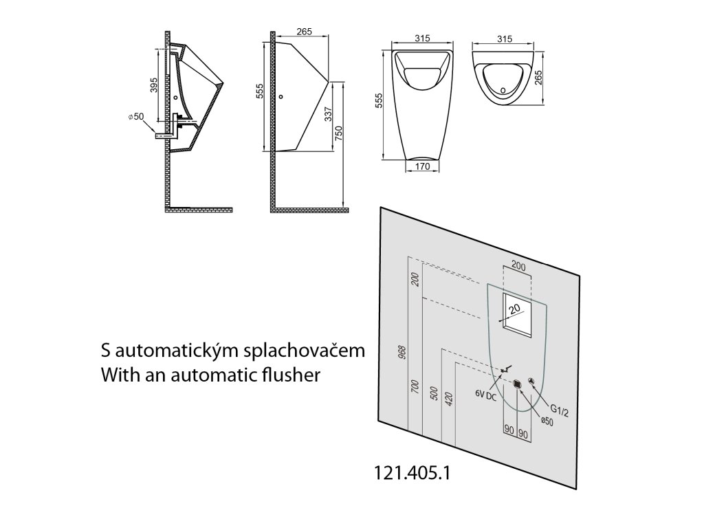 SCHWARN urinál s automatickým splachovačom 6V DC, zakrytý prívod vody