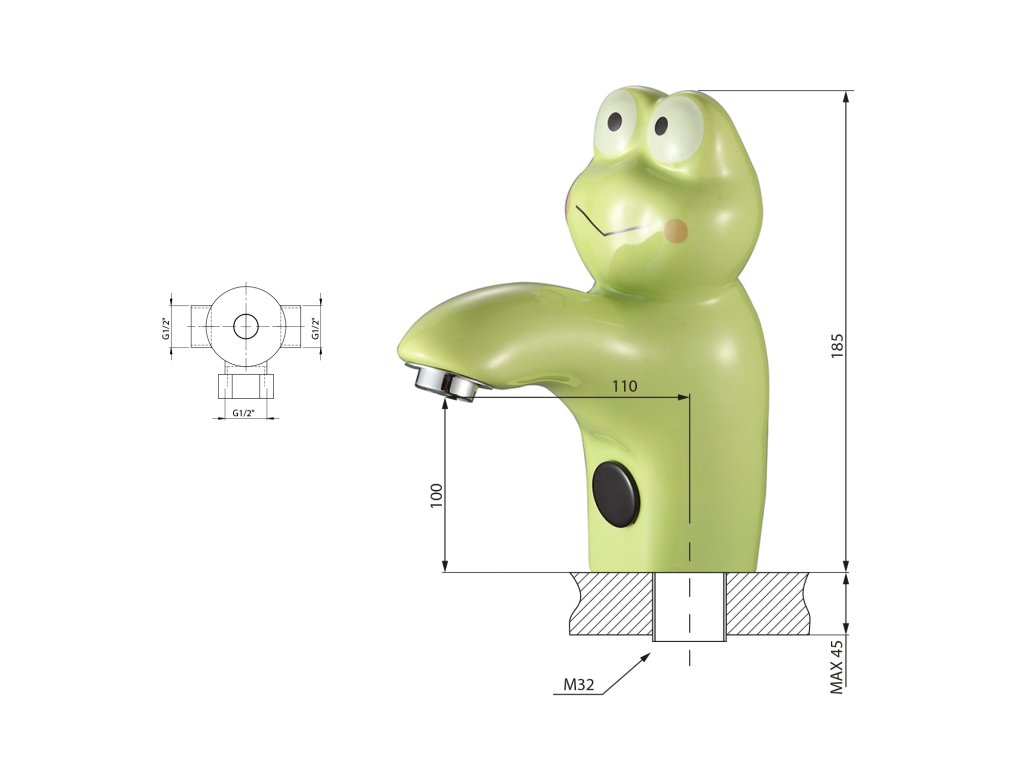 Senzorová stojanková keramická batéria 6V DC (4xAA), žaba, zelená