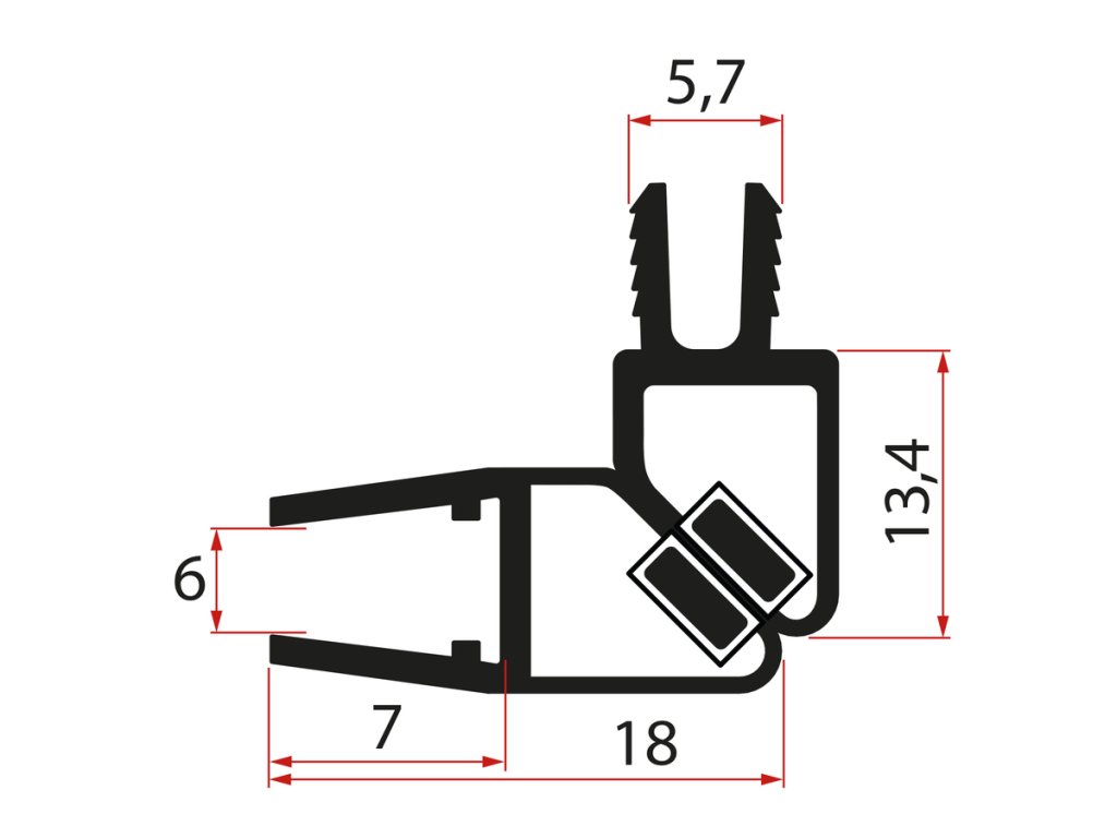 Set magnetických tesnení 45 ° pre sklo 6mm a profil, 2000mm, čierna