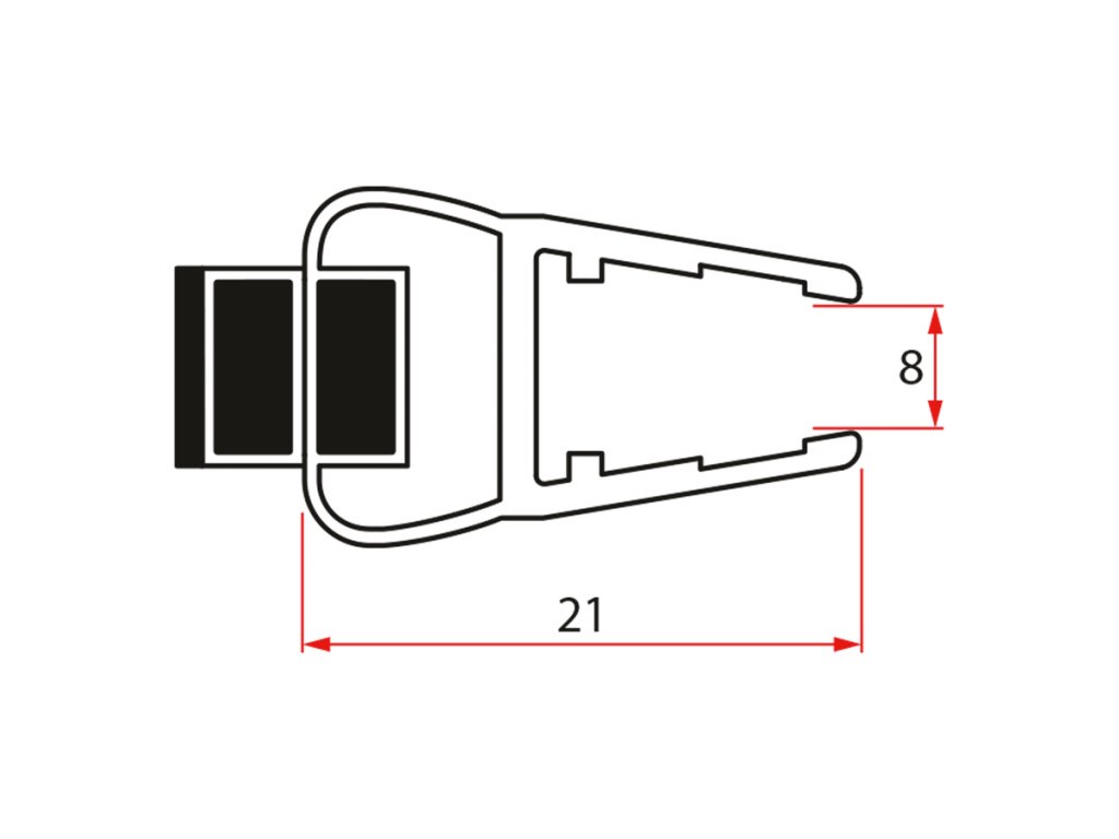 Set tesnení magnetické pre sklo 8mm a 3M pre nalepenie, 2000mm