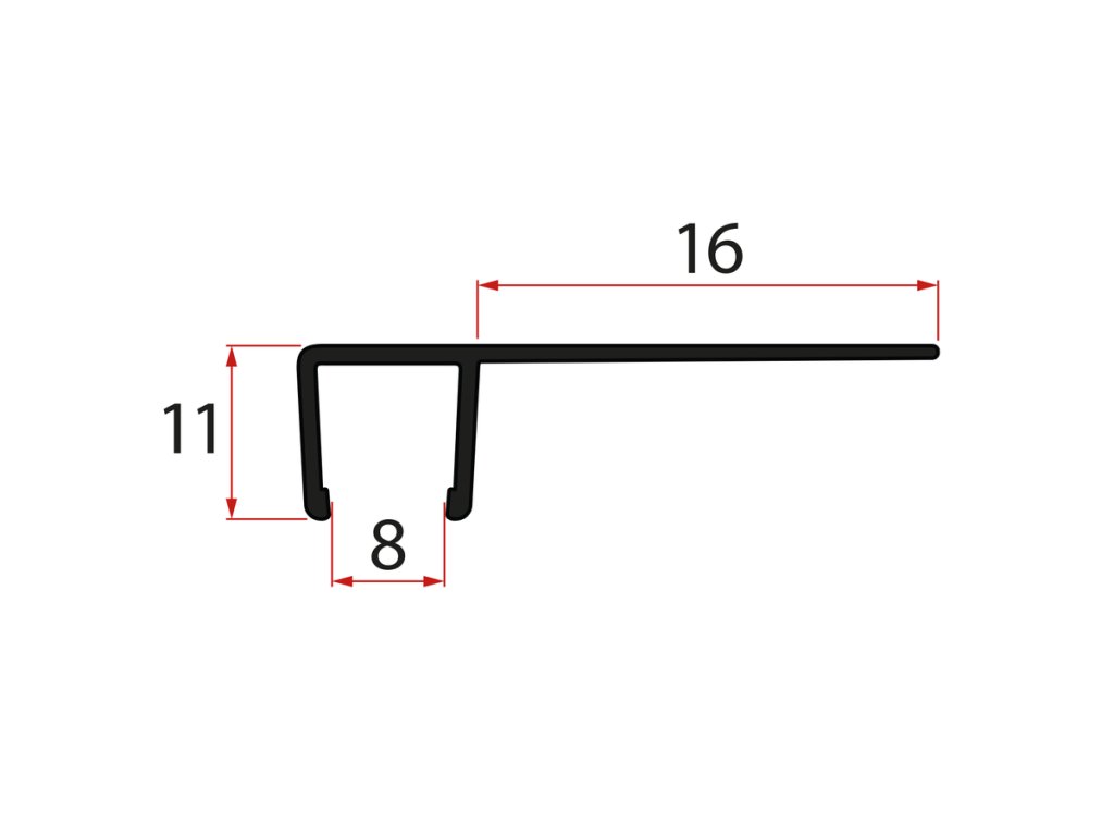 Set zvislých tesnení pre 8/8mm sklo, 2000mm, čierna