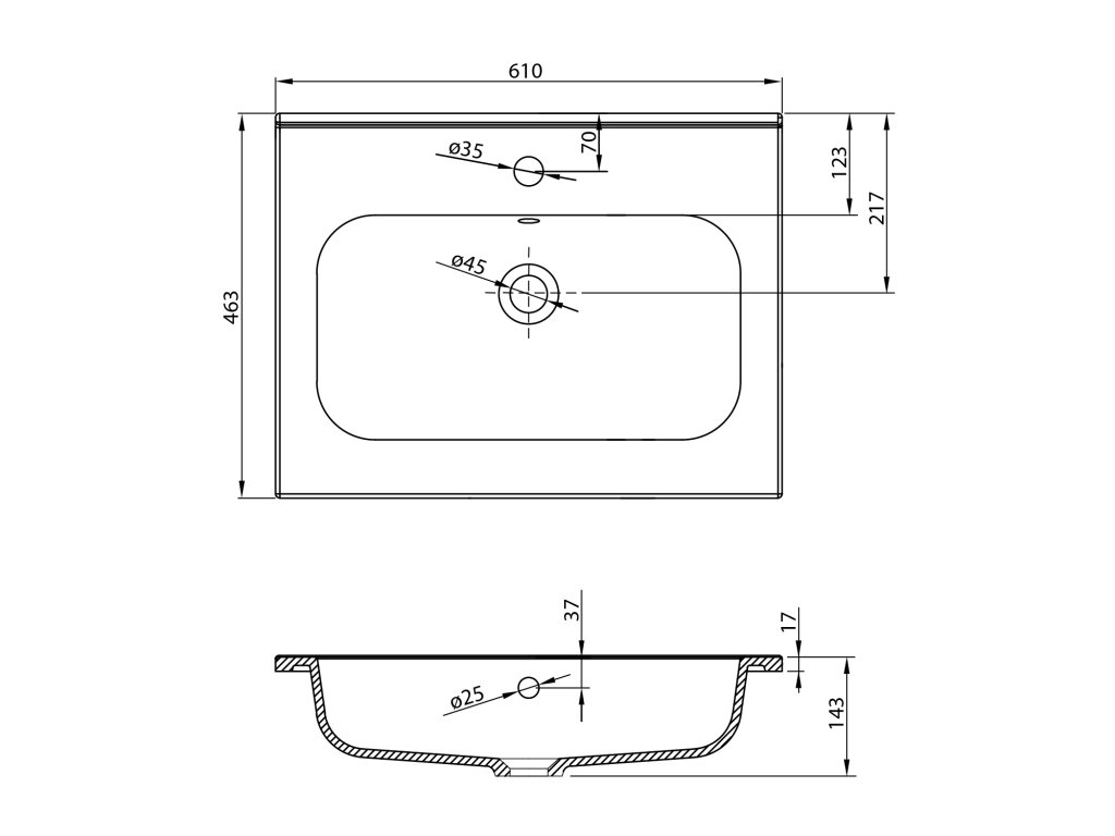 SIDRA umývadlo, liaty mramor, 61x46cm, bielá