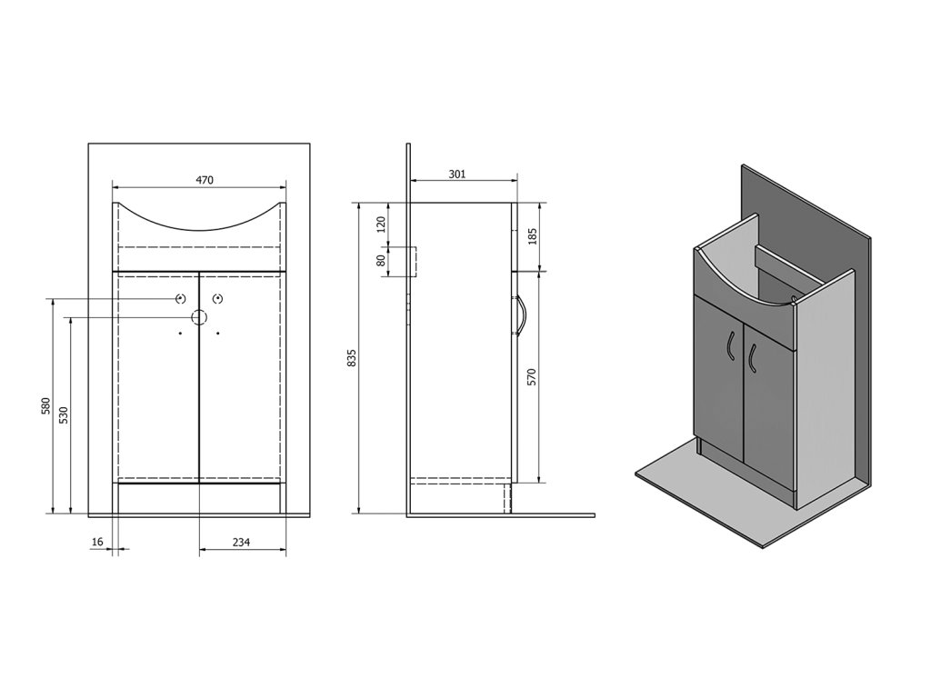 SIMPLEX ECO 50 umývadlová skrinka vrátane umývadla 47x83,5x29cm