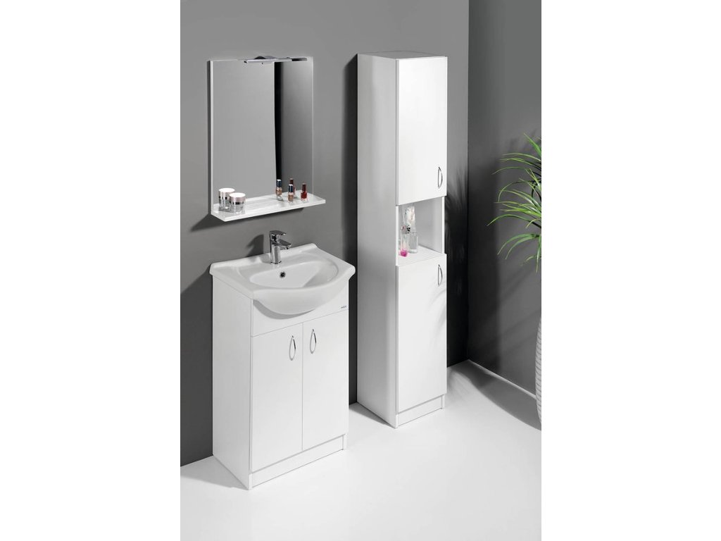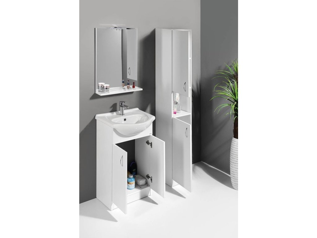 Kúpeľňový nábytok z bieleho lamina, najjednoduchšie riešenie pre Vašu kúpeľňu. Ponuka umývadlových skriniek v 4 rozmeroch v šírkach od 50 cm do 65 cm v kombinácii s niekoľkými variantmi doplnkových skriniek ponúka priaznivé usporiadanie nábytku takmer do každej kúpeľne za najlepšiu cenu..