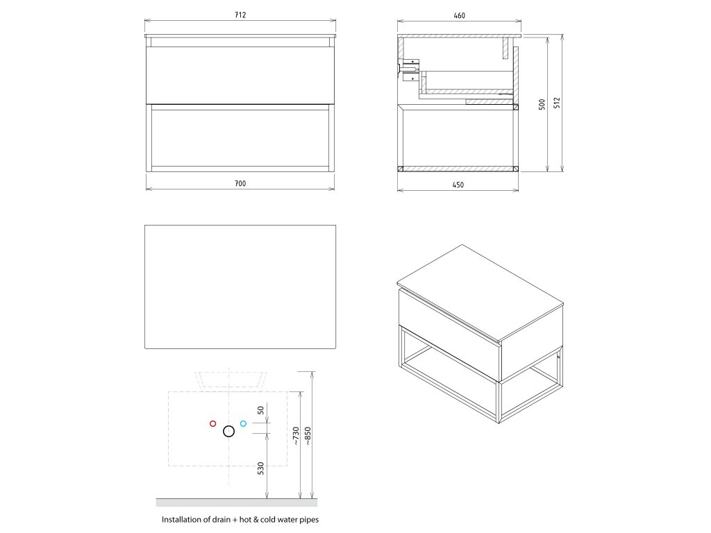Závesné konštrukcie v šírkach 60, 80 a 100 cm sú určené pre umývadlo TWIG z liateho mramoru v bielej farbe. V ponuke sú aj konštrukcie určené výhradne na inštaláciu s rockstone doskou v šírkach 70 až 100 cm.