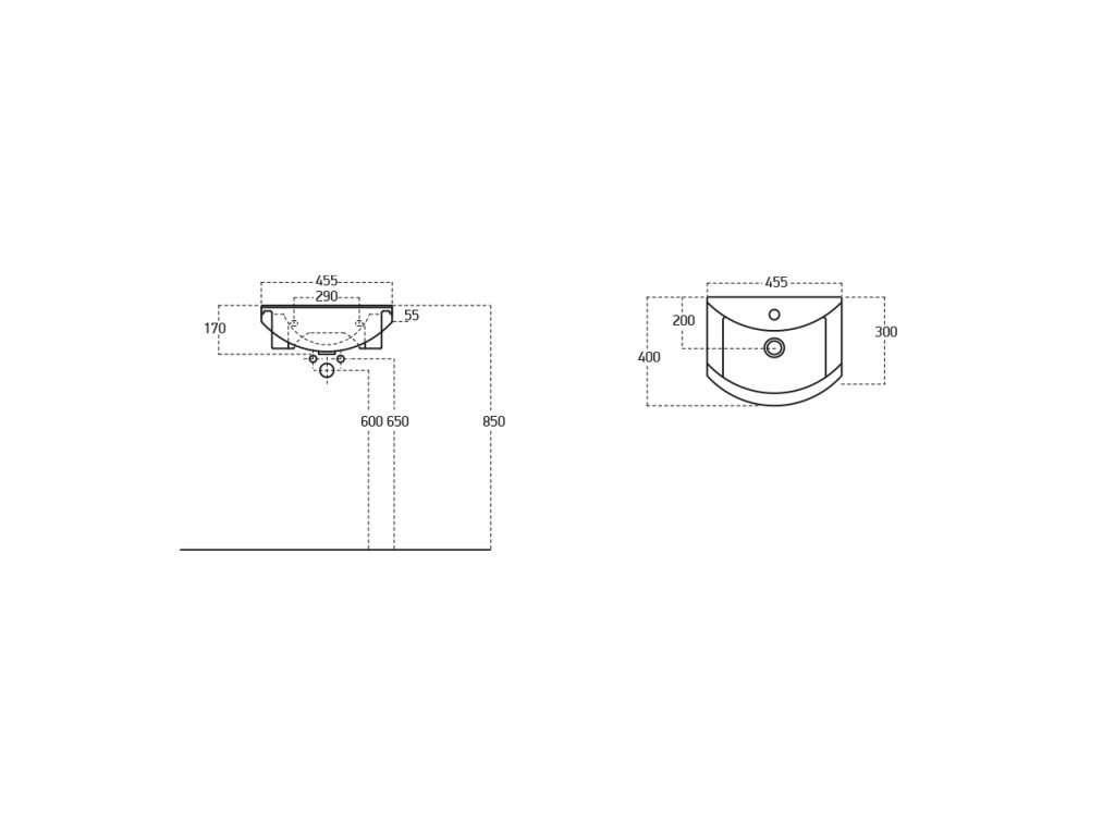 - keramické umývadlo: 45,5 × 40 × 17 cm
