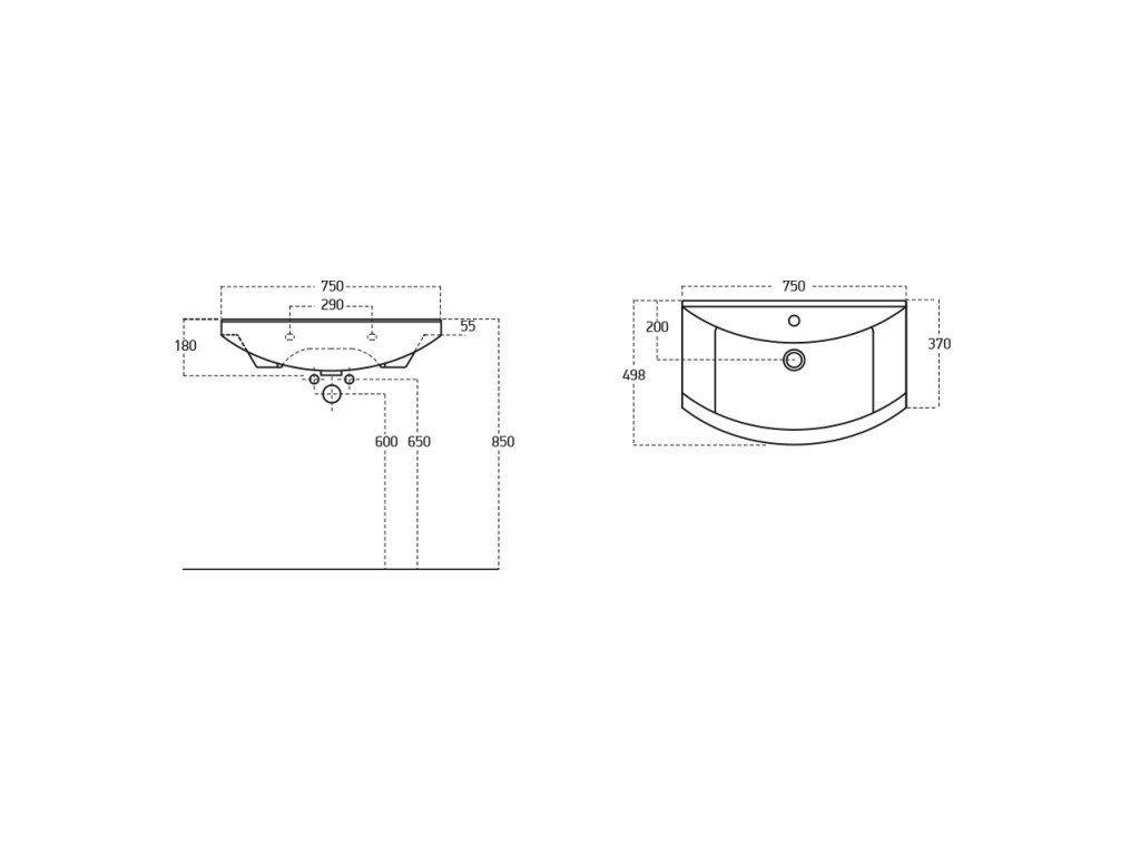 - keramické umývadlo: 75 × 48,5 × 19 cm