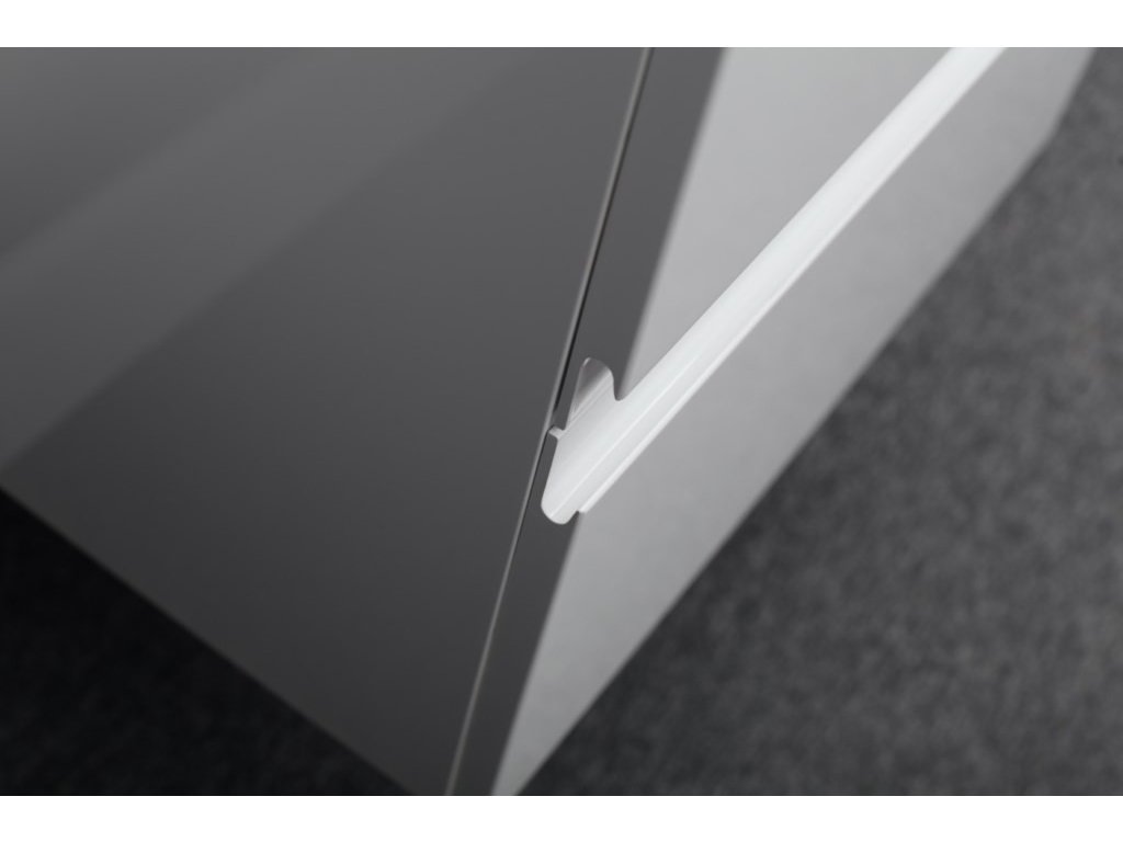 Vďaka „tichému zatváraniu“ sa dvierka a zásuvky v poslednej fáze zatvárania spomalia a zatvoria sa takmer ticho . Zakrivená línia čiel s elegantnou frézou dáva ľahký a jemný štýl . Celok dotvára obdĺžnikové moderné umývadlo .