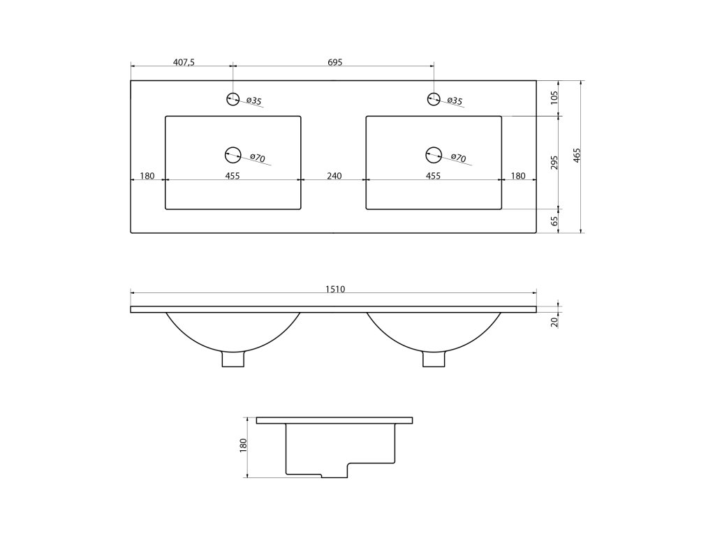 SLIM keramické dvojumývadlo 150x46cm, biela