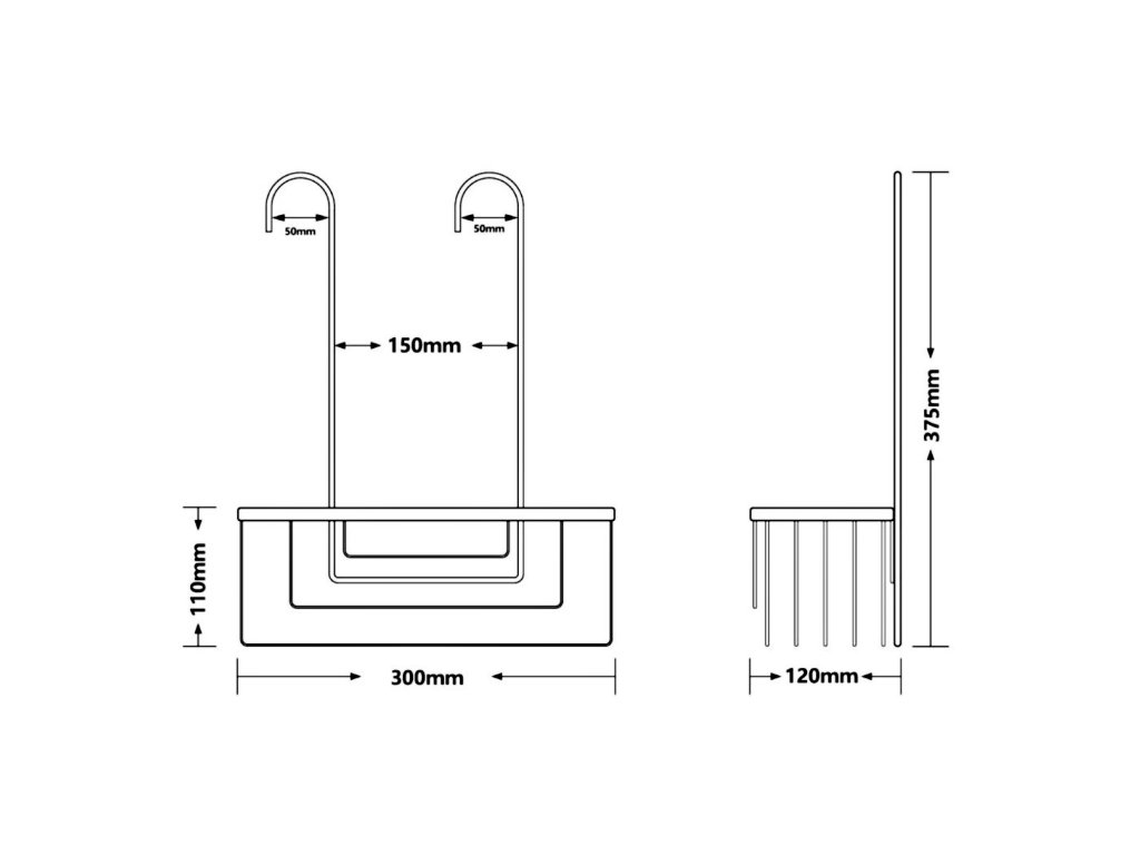 SMART Polica do sprchy závesná, na batériu, 300x375x120 mm, čierna mat