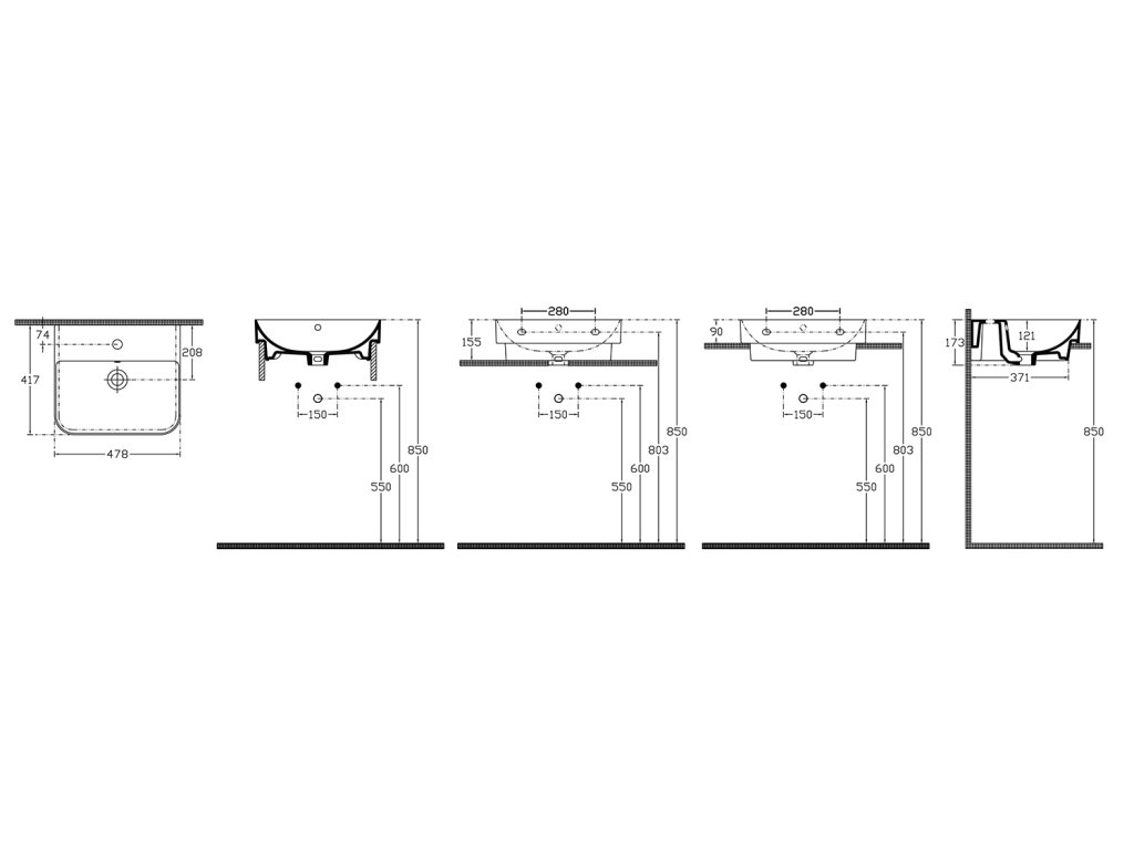SOTT AQUA keramické umývadlo zápustné, 48x42cm, biela