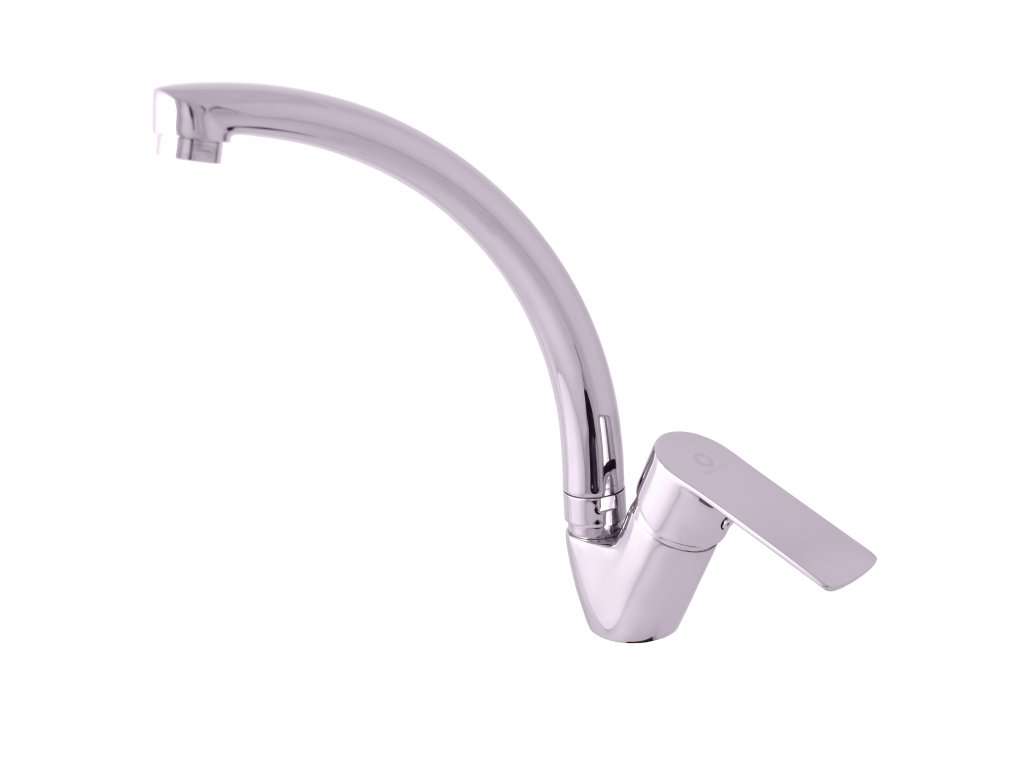 Sporiaca vodovodná batéria drezová stojanková s otočným ústím.