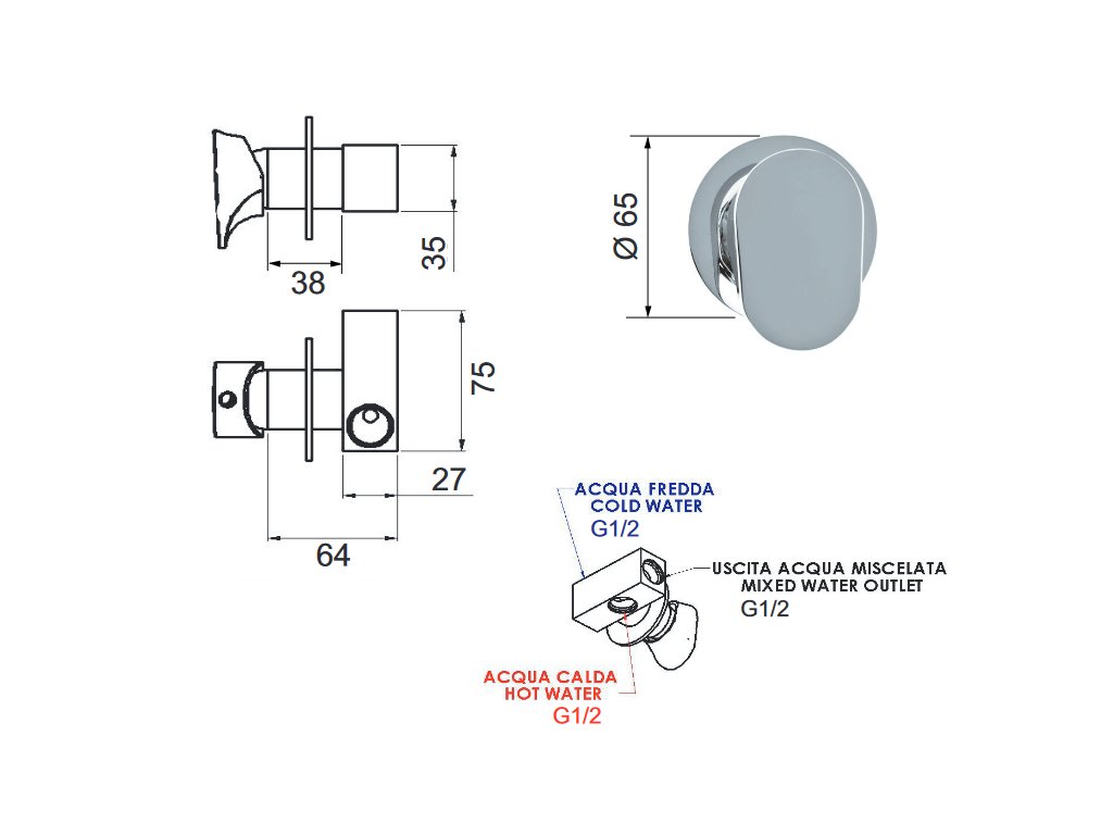 Sprchový podomietkový uzatvárací ventil FONTI 63 - chróm