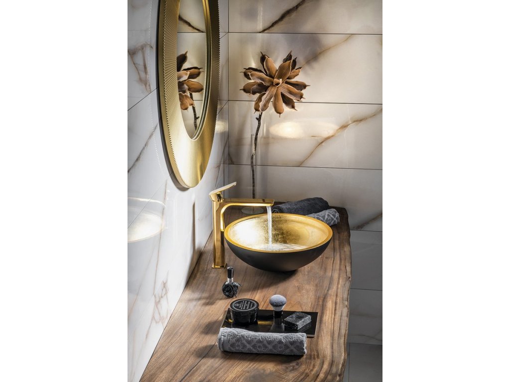SPY stojánkova umývadlová batéria vysoká, predĺžená hubica, zlato