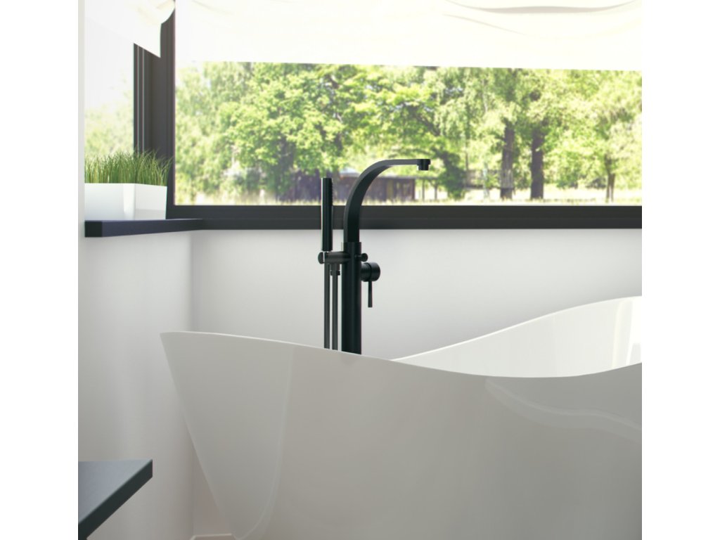 Stojanková batéria do podlahy vyzerá skvele v kombinácii s voľne stojacou vaňou.