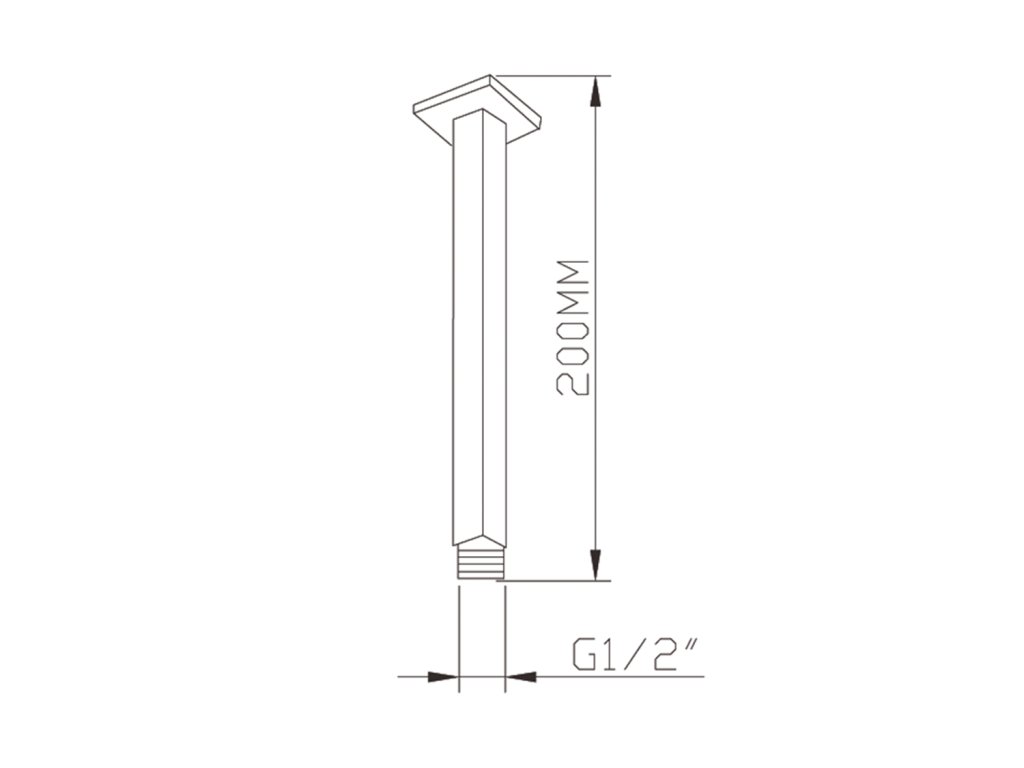 Stropní sprchové ramienko, hranaté, 200mm, čierna mat