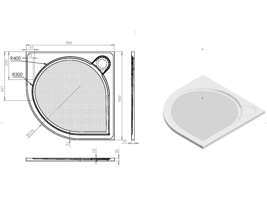 Štvrťkruhová mramorová sprchová vanička LAKA R550