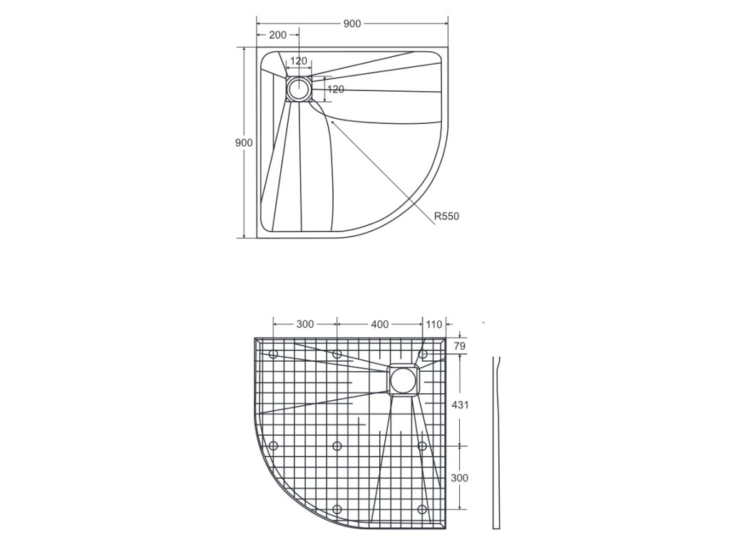 Rozmery a parametre štvrťkruhovej vaničky VEXO: