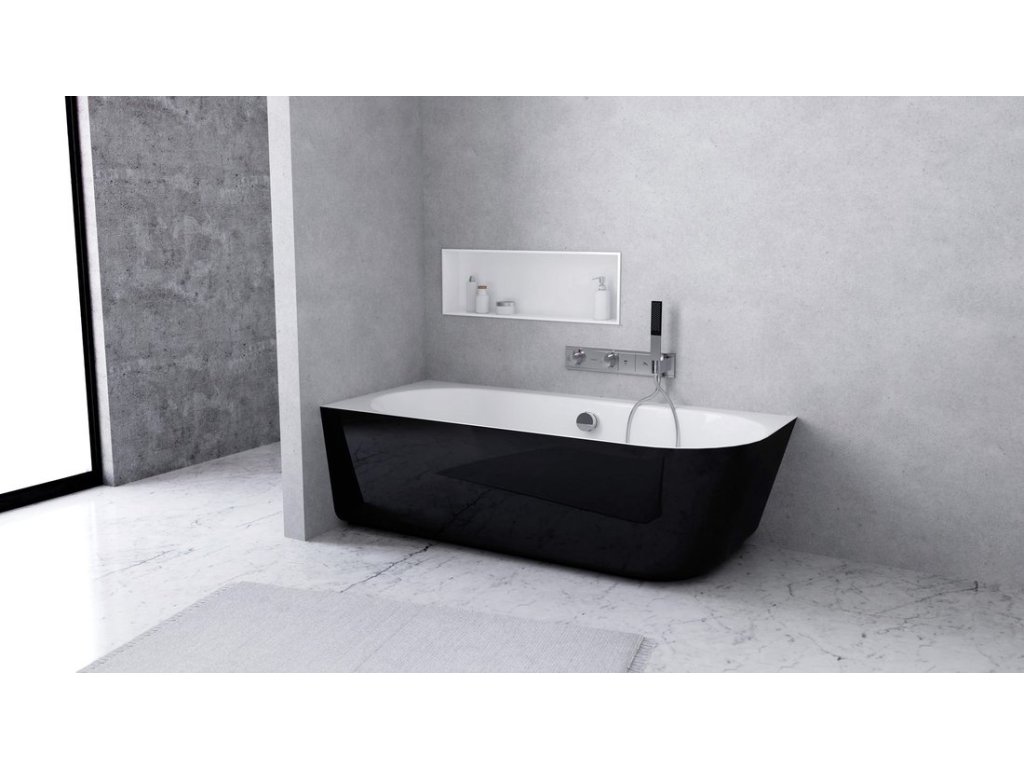 SUSSI L rohová stojaca vaňa liaty mramor 160x70x49,5cm, čierna/biela