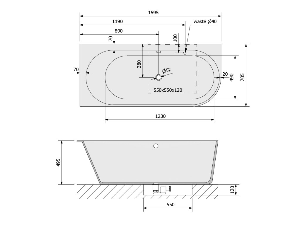 - K vani je nutné použiť prepadovú súpravu s dĺžkou min. 675 mm