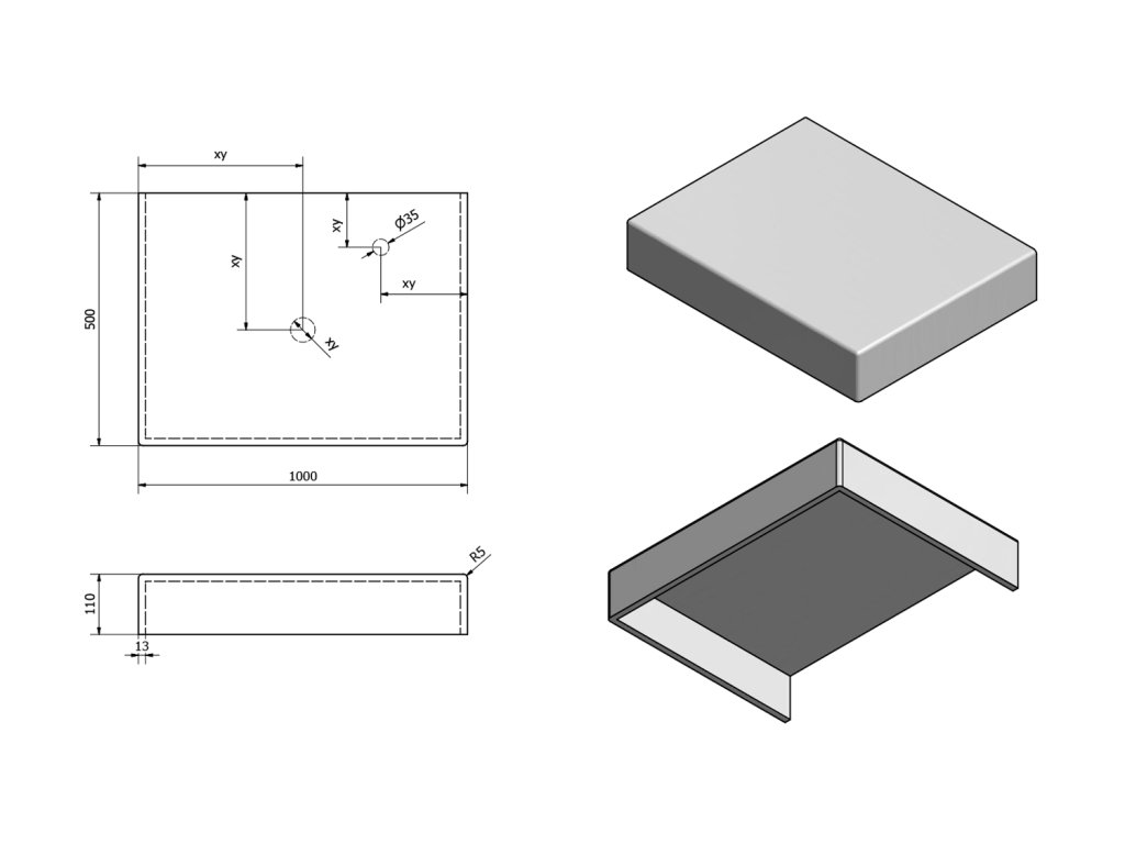 - Možnosť dodania s otvormi pre batériu a odpad podľa výkresu (možno vŕtať aj v mieste inštalácie)