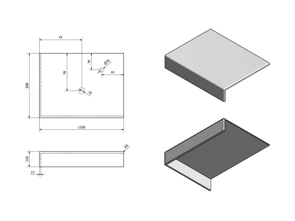- Možnosť dodania s otvormi pre batériu a odpad podľa výkresu (možno vŕtať aj v mieste inštalácie)