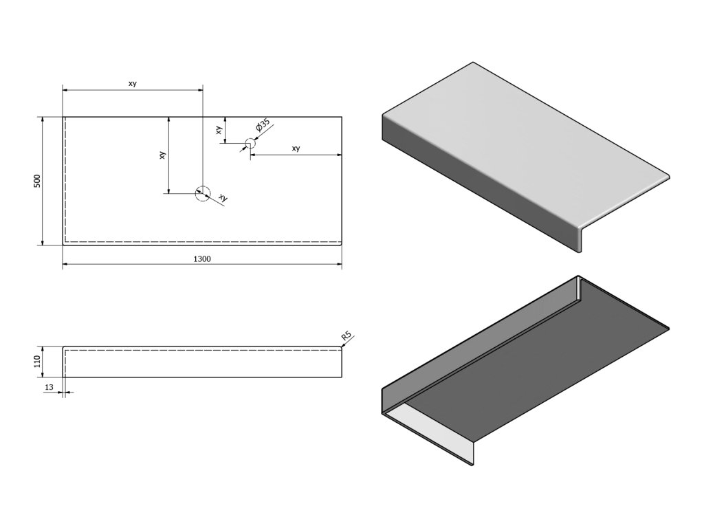 - Možnosť dodania s otvormi pre batériu a odpad podľa výkresu (možno vŕtať aj v mieste inštalácie)