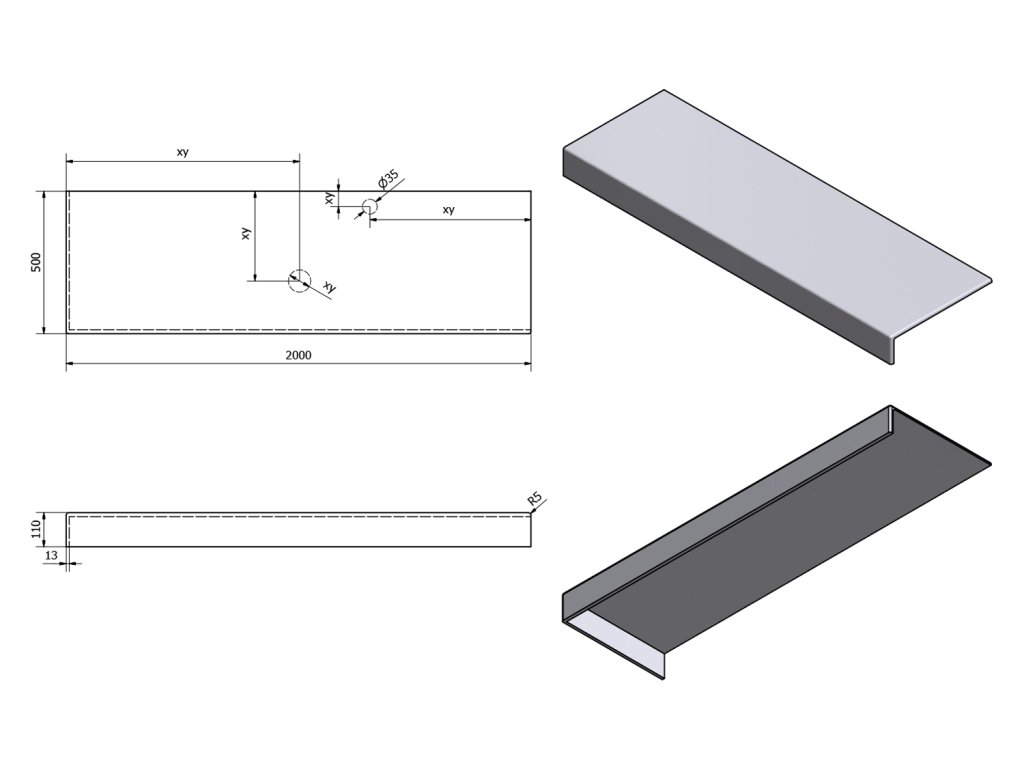 - Možnosť dodania s otvormi pre batériu a odpad podľa výkresu (možno vŕtať aj v mieste inštalácie)