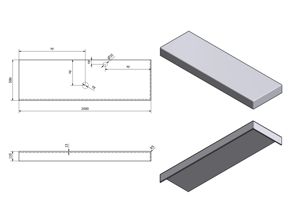 - Možnosť dodania s otvormi pre batériu a odpad podľa výkresu (možno vŕtať aj v mieste inštalácie)