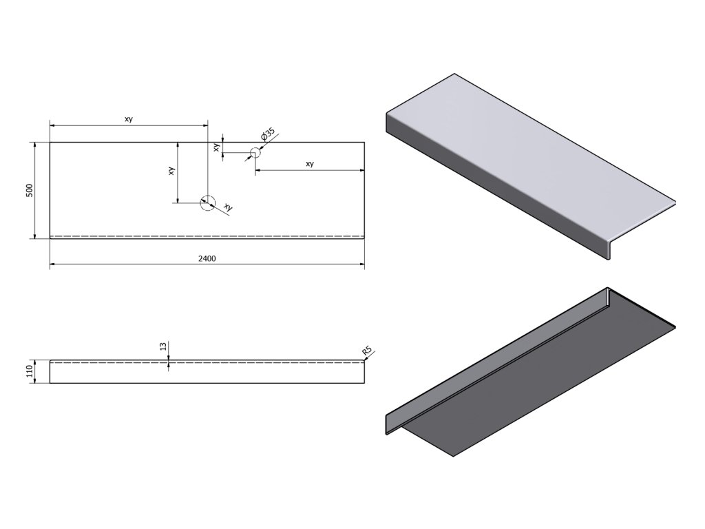 - Možnosť dodania s otvormi pre batériu a odpad podľa výkresu (možno vŕtať aj v mieste inštalácie)