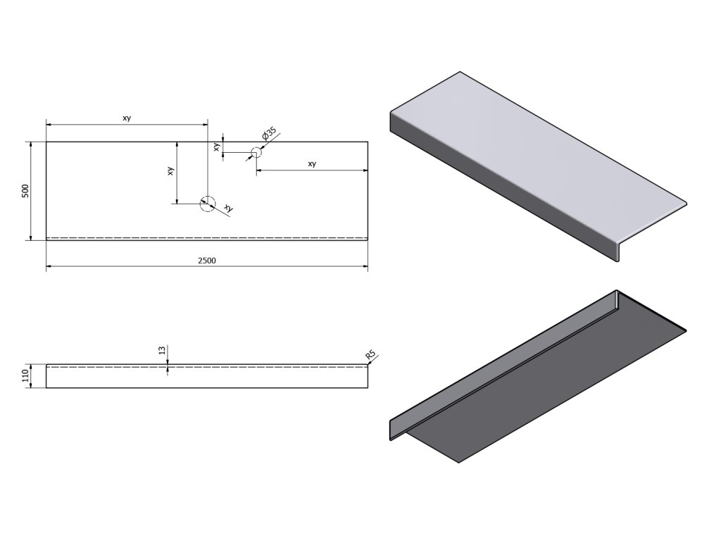 - Možnosť dodania s otvormi pre batériu a odpad podľa výkresu (možno vŕtať aj v mieste inštalácie)