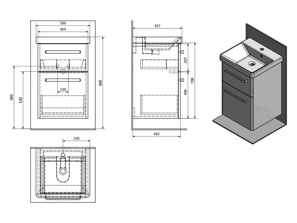 THEIA umývadlová skrinka 46,4x70x44,2cm, 2xzásuvka, biela