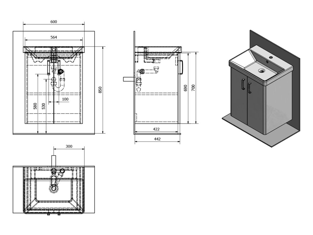 THEIA umývadlová skrinka 56,4x70x44,2cm, 2x dvierka, biela
