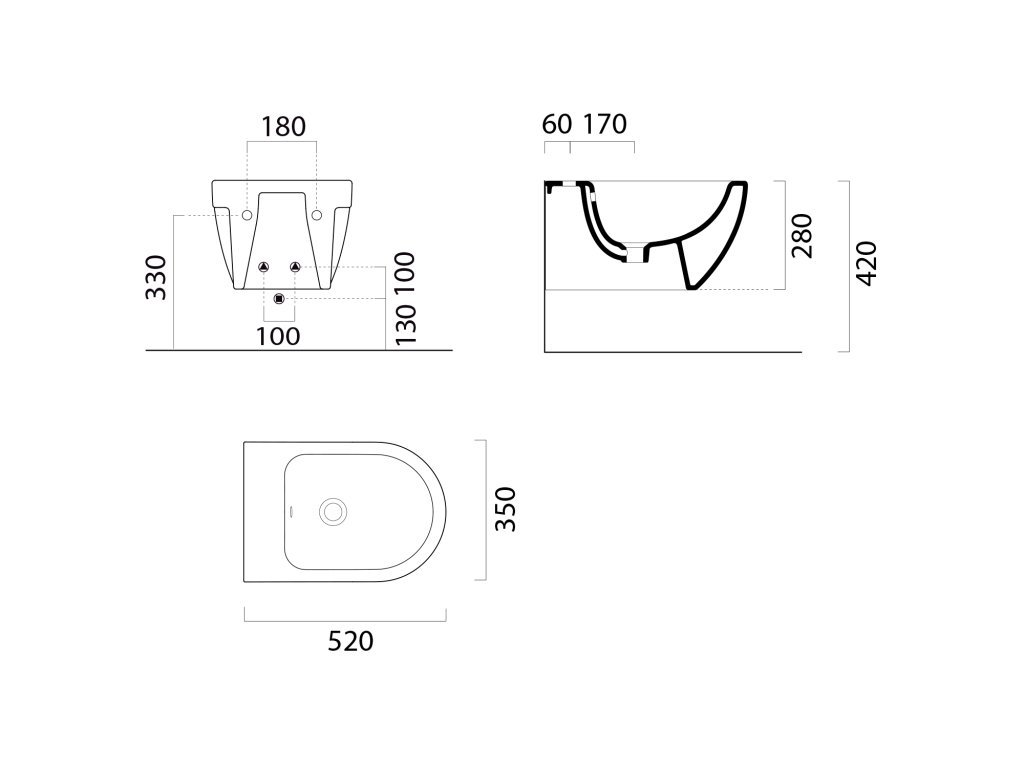 TONO bidet závesný, 35x52cm, biela ExtraGlaze