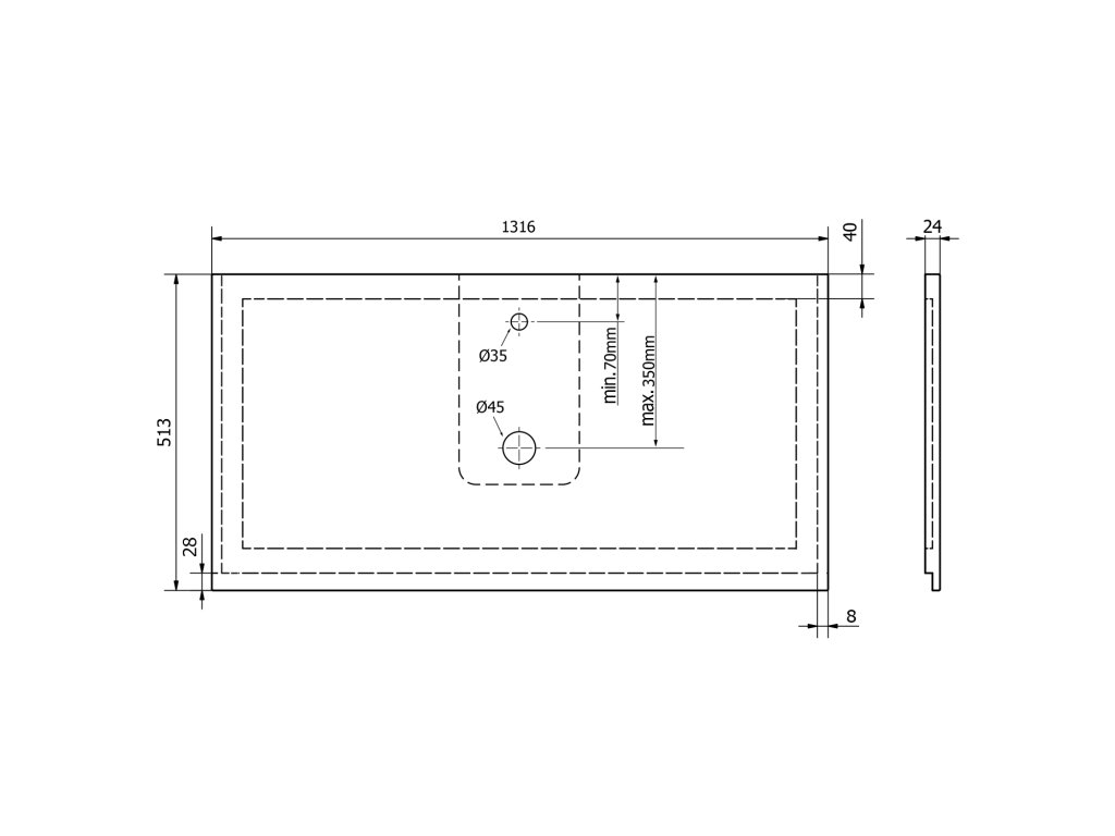 TREOS doska 1316x513 mm, Rockstone, biela matná