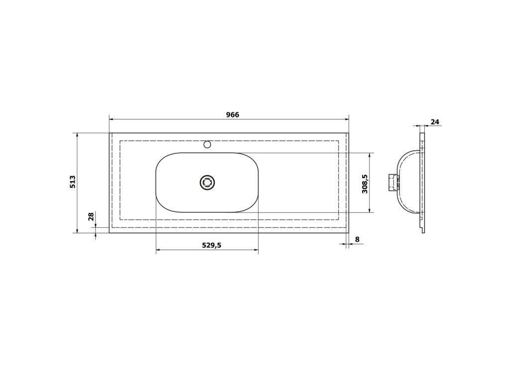 TREOS umývadlo 96,6x51,3 cm, Rockstone, ľavé, biela matná