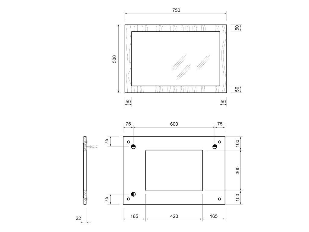 TREOS zrkadlo v ráme 75x50cm, biela matná