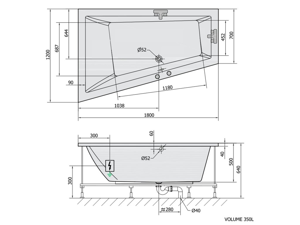 TRIANGL L hydromasážna vaňa, 180x120x50cm, Attraction Hydro, chróm