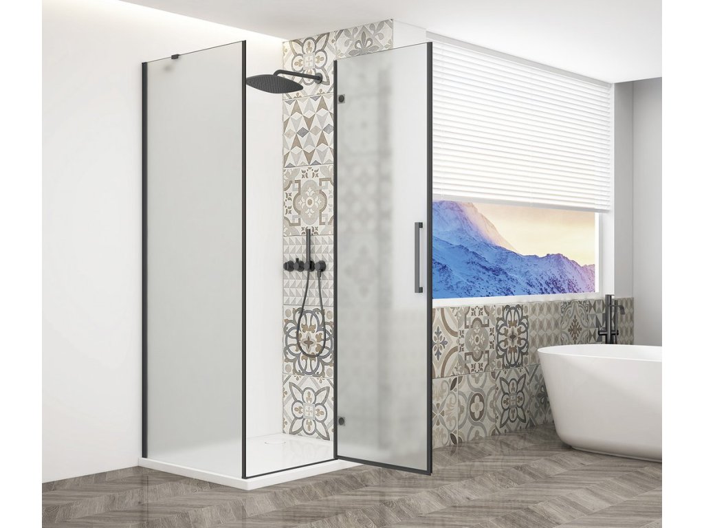 TRINITY BLACK štvorcová sprchová zástena 900x900mm, matné sklo, pravé